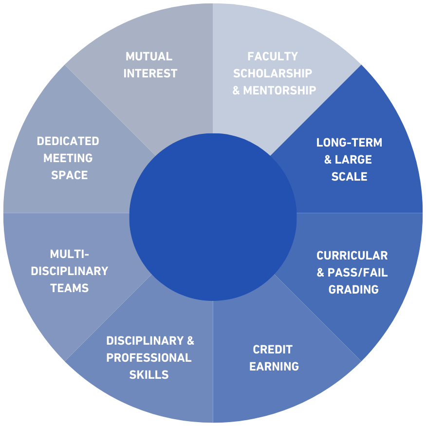 Faculty/student participation is based on mutual interest. In VIP, students and faculty engage in projects that are of mutual interest, which is key to the success and scalability of VIP programs. Faculty stay actively engaged because teams help advance their scholarship and research and support the work of their graduate students. Students select projects that align with their personal interests. The single most influential factor that predicts student success on a VIP team is the student's enthusiasm for the project.
